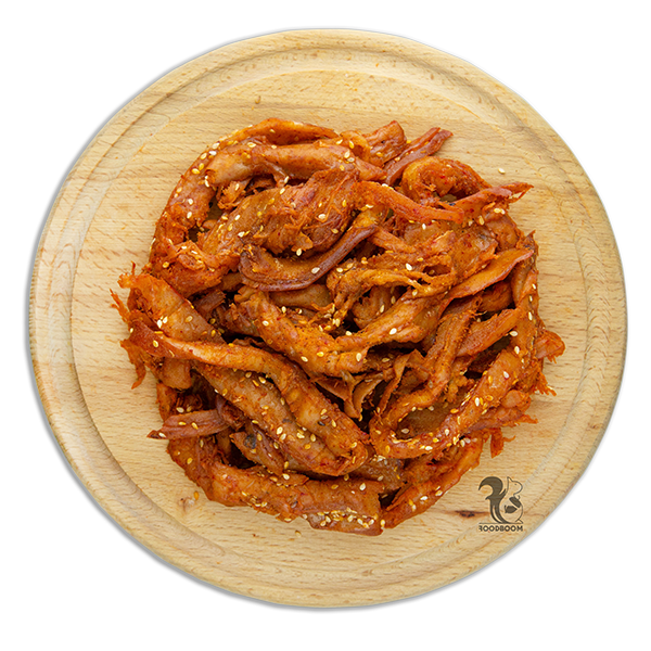 Цей снек здатен викликати справжній вибух смаків. Його поєднання з ароматною паприкою та кунжутом створює оригінальну комбінацію. Кожен шматочок кальмара розкривається у роті, вибухаючи нотками солодко-гострого, пікантного присмаку.