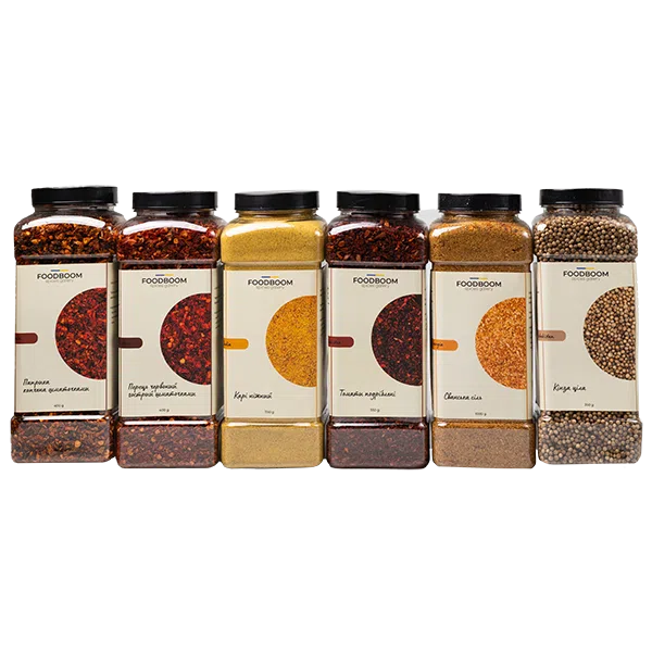 Набір спецій – це колекція шести видів спецій у зручних герметичних банках. Кожна має свій специфічний смак і аромат, які гармонійно поєднуються з різними кулінарними стравами. Цей набір є необхідним доповненням до вашої кухні, і дозволить вам створювати унікальні смакові комбінації. До складу набору входять – Карі ніжний, Кінза ціла, Паприка копчена шматочками, Сванська сіль, Червоний гострий перець шматочками, Томати подрібнені.