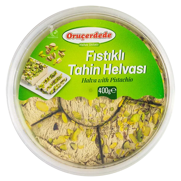 Тахінна халва з фісташкою – це східний десерт, який завоював серця по всьому світу. Халва виготовлена з ніжної кунжутної пасти тахіні та прикрашена дрібними шматочками фісташок, які дарують додаткову хрусткість. Вона характеризується глибоким кунжутним смаком із легкими акцентами солонуватих фісташок, створюючи неперевершене поєднання смаків.